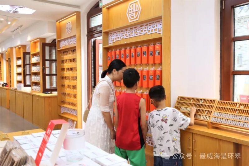 隨機(jī)走進(jìn)一家文創(chuàng)店,富有威海特色的桌面擺件、扇子、冰箱貼等琳瑯滿目,令人目不暇接,大家或?qū)⒕赖奈锲份p輕拿起,或俯下身子仔細(xì)觀賞。來(lái)自四川的王女士帶著孩子前來(lái)游玩,體驗(yàn)過(guò)老街的魅力后,她忍不住贊嘆:“將古建筑元素融入到現(xiàn)代都市中,感覺非常奇妙,街上有很多文創(chuàng)店,都非常有特色,非常適合帶回去留作紀(jì)念。”