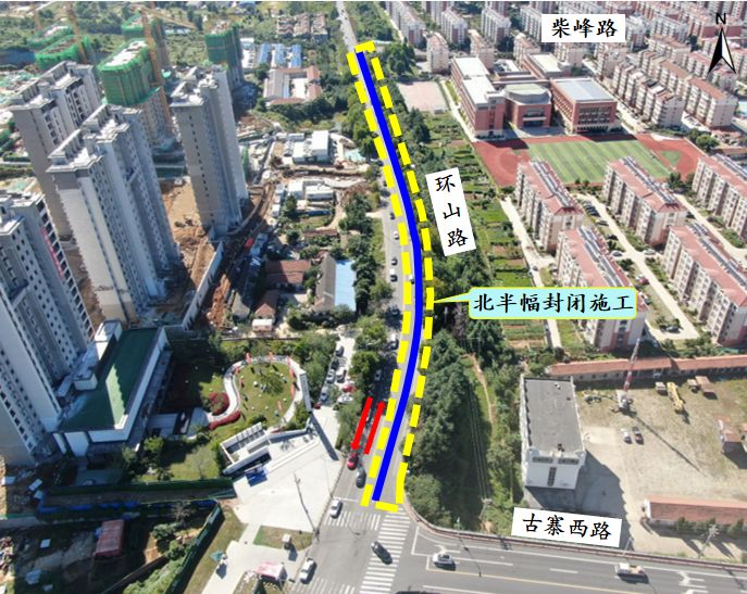 三、通行方案:施工期間保證環(huán)山路雙向兩車道通行,古寨西路與環(huán)山路交叉口可正常通行。施工期間,為保證施工期交通運行順暢,建議車輛提前繞行福山路、古寨東路、古寨西路,避免交通擁堵,影響通行時間。施工沿線路段路邊禁止停車。