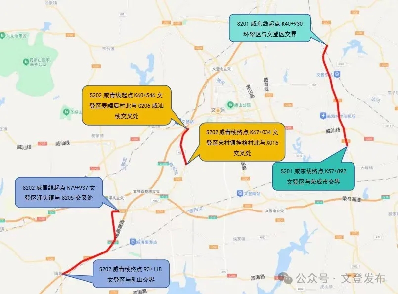目前文登區(qū)境內S201威東線K40+930(環(huán)翠區(qū)與文登區(qū)交界)至K57+892(文登區(qū)與榮成市交界)、S202 威青線K60+546(文登區(qū)麥疃后村北與G206威汕線交叉處)至K67+034(文登區(qū)宋村鎮(zhèn)神格村北與X016交叉處)、S202威青線K79+937(文登區(qū)澤頭鎮(zhèn)與S205交叉處)至K93+118(文登乳山交界)等三處路段進行路面改造施工。