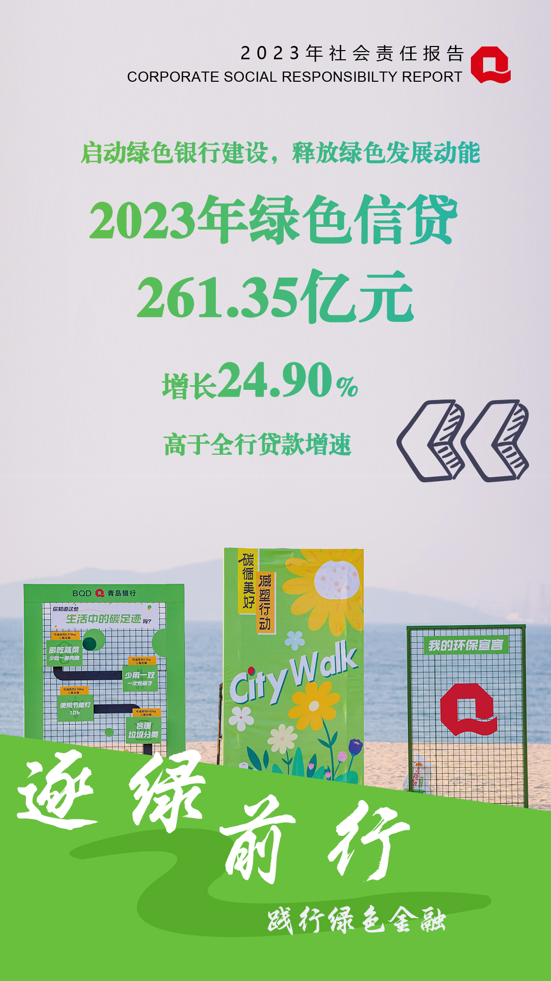 堅(jiān)持生態(tài)優(yōu)先、綠色發(fā)展理念,2023年,青島銀行加大綠色金融產(chǎn)品創(chuàng)新,著力深耕降本增效賽道,努力擦亮“綠色銀行”名片,釋放綠色發(fā)展動(dòng)能,賦能本行高質(zhì)量發(fā)展。