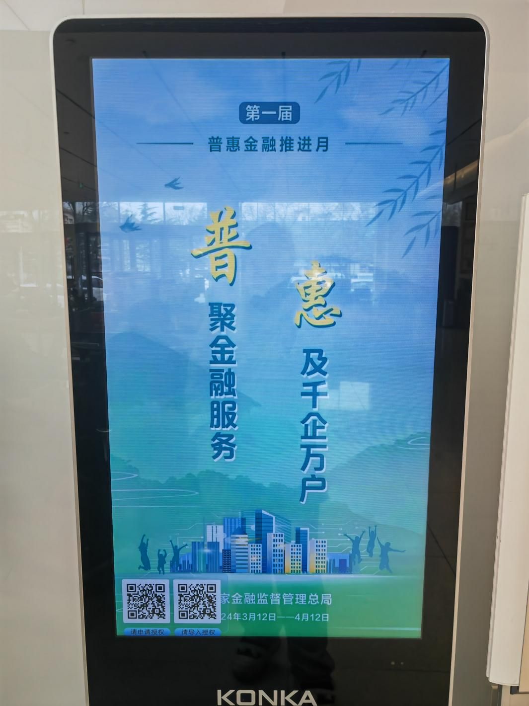 圍繞“普聚金融服務(wù),惠及千企萬戶”活動主題,在轄內(nèi)多個網(wǎng)點(diǎn)電子屏統(tǒng)一布放國家金融監(jiān)管總局下發(fā)的宣傳海報(bào),LED屏滾動播放“普惠金融推進(jìn)月”、“普聚金融服務(wù),惠及千企萬戶”等宣傳信息,通過多種形式的宣傳活動,積極對接市場主體和人民群眾金融需求,宣傳介紹普惠金融政策和產(chǎn)品,以高質(zhì)量的金融服務(wù),為服務(wù)實(shí)體經(jīng)濟(jì)發(fā)展貢獻(xiàn)招行力量!